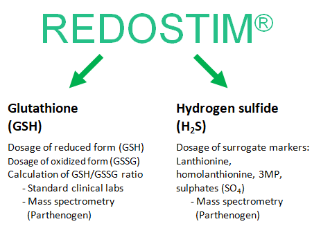 Hydrogen sulphide (H2S) is released by the same enzymes that synthesize GSH when they work according to their alternative mode. This happens when cells undergo various types of stresses including oxy-redox (in both directions), thermal, reticuloendothelial (protein misfolding), and others. The H2S released by a cell spreads (it is a gas) to nearby ones, influencing their activity by epigenetic modifications (activation / repression of genes) and by modifications of the activity of functional proteins. Given the nature of its release, the effects of Redostim on H2S release cannot be measured with the circulating level of the substance which is erratic, difficult to measure accurately and of little clinical significance, and in fact the common laboratories do not offer this test. Instead, it is possible to measure the concentration in the blood of the substances produced during its release. This can be done only through mass spectrometry methods and makes sense only in particular situations (e.g. subjects with high cardiovascular risk). Interested parties can contact us by writing to testing@parthenogen.eu